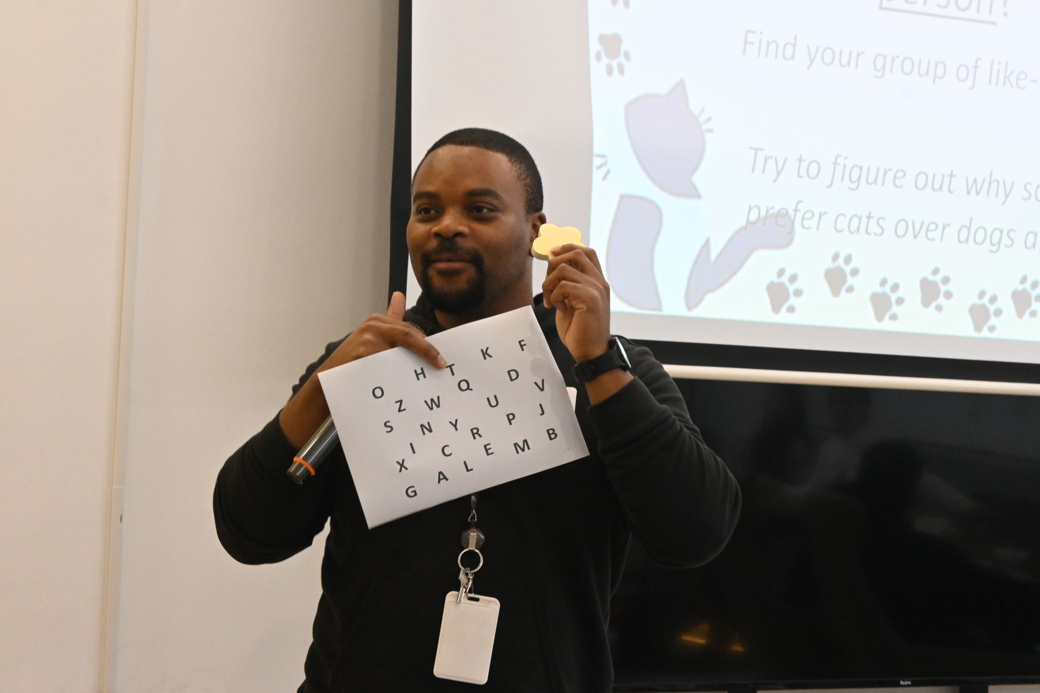 在趣味话题讨论环节,Kay展示各类动物图片,邀请同学们围绕“图片中的动物是否酷”展开辩论,当话题转向“猫派”与“狗派”的趣味对决时,现场氛围瞬间推向高潮。同学们各抒己见,用流利的外语阐述自己的理由,还主动展示自家宠物与偶遇流浪小动物的可爱照片,温馨的分享让现场充满温情与欢乐。